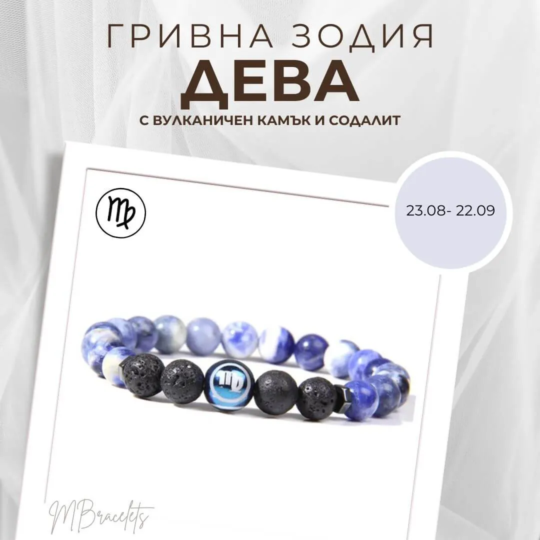 Гривна от Естествени Камъни Содалит и Вулканичен камък, Зодия Дева