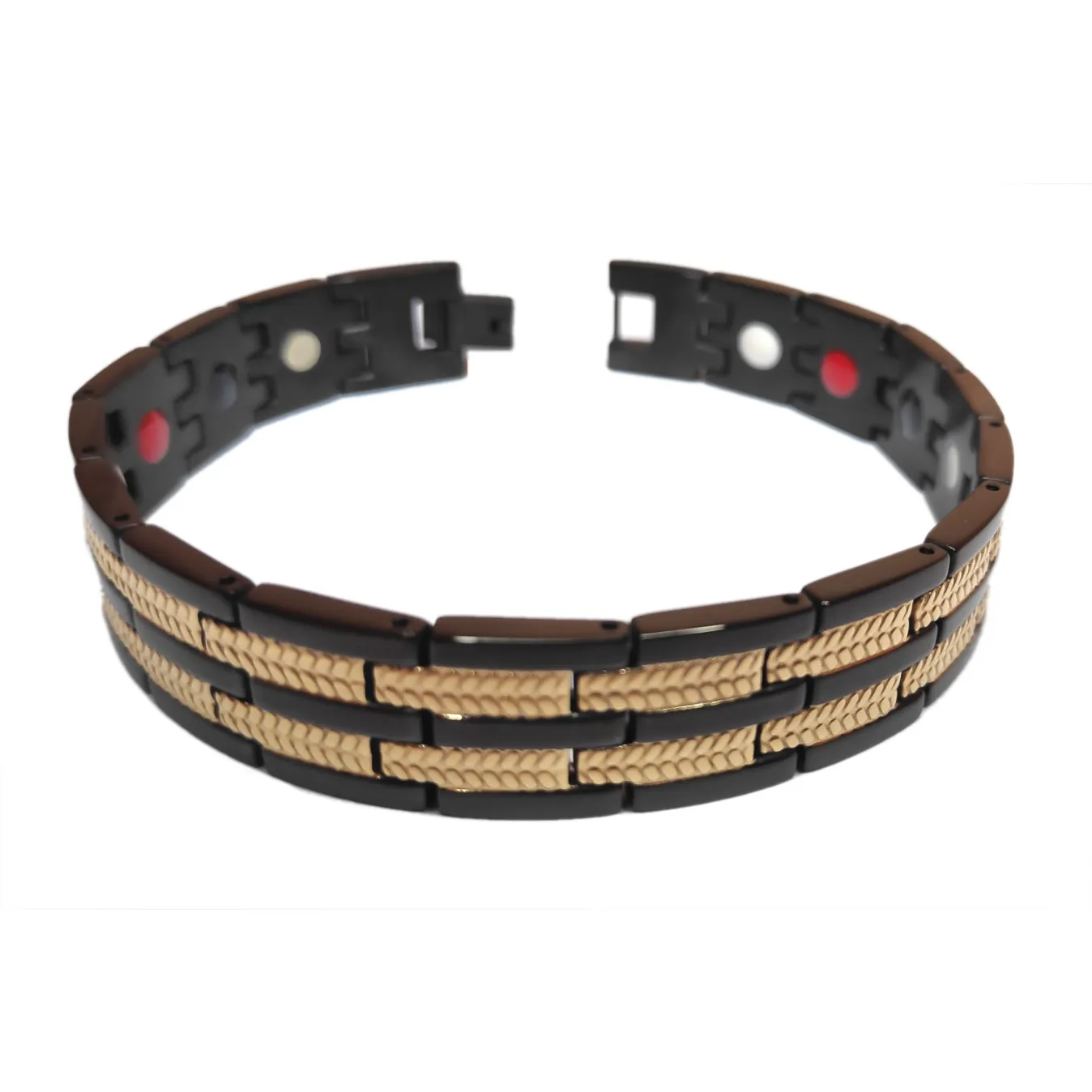 Регулирай кръвното с Магнитна гривна Титанова Унисекс Черно-Златиста (Код: T-355)