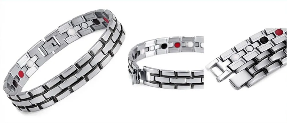 Магнитна гривна от титан за високо кръвно Мъжка Сребристо-Черна