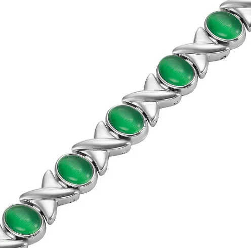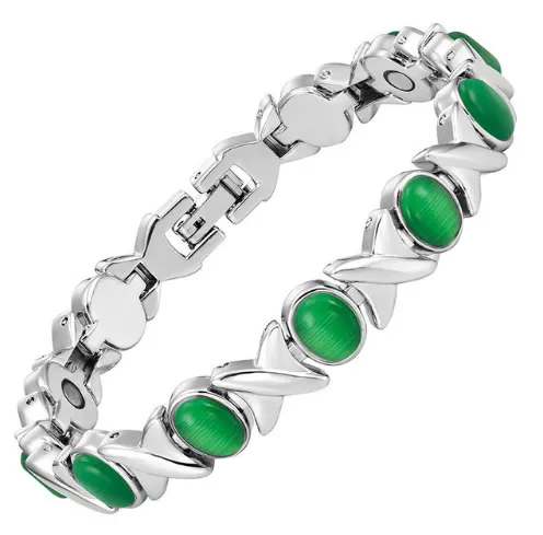Без високо кръвно с Титаниева магнитна гривна, Дамска, Сребристо-зелена