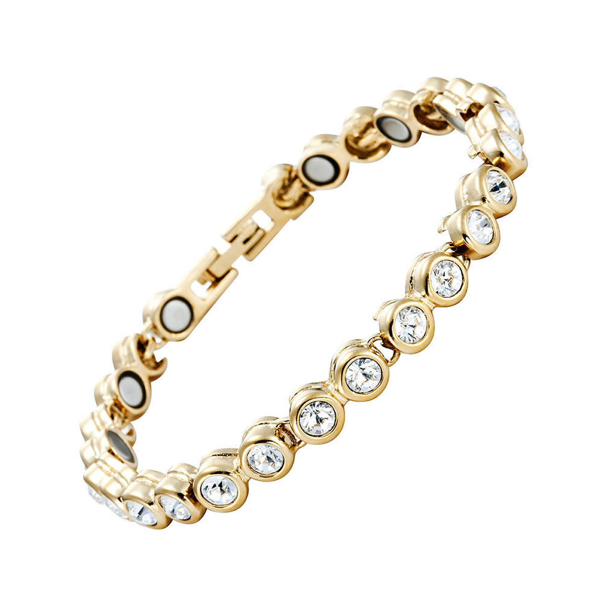 Дамска титаниева магнитна гривна за високо кръвно, Златиста с камъчета